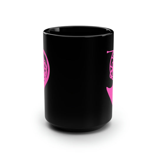 HOT PINK FRENCH HORN BLACK MUG, 15oz
